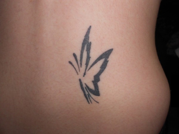 女生腰上黑色线条创意唯美蝴蝶纹身图片