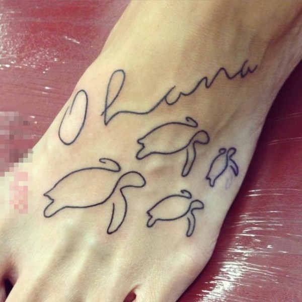 女生脚背上黑色抽象线条小动物乌龟纹身图片