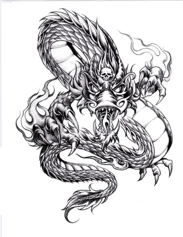 龙纹身手稿_一组老传统黑灰龙手稿纹身图案
