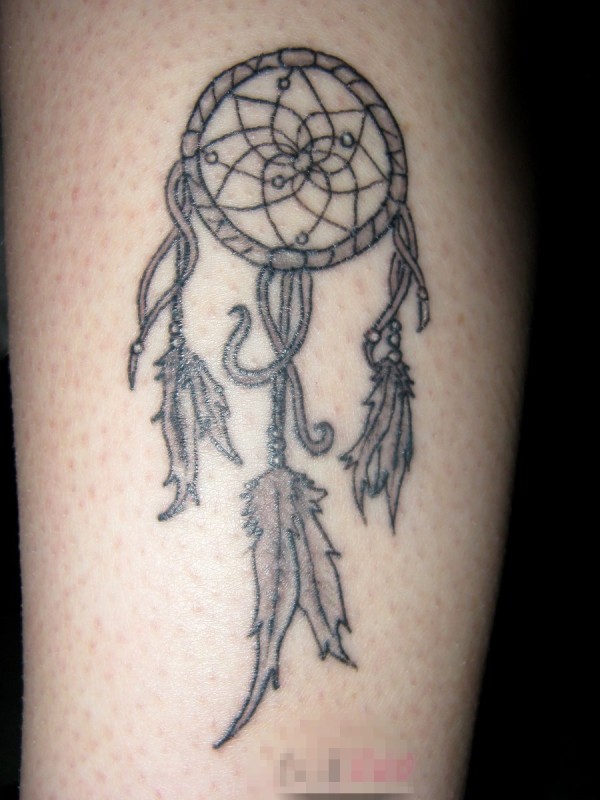 女生小腿上黑灰素描文艺捕梦网纹身图片