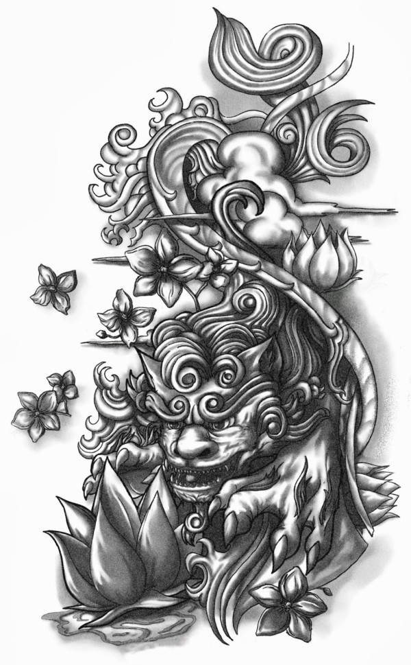 龙纹身手稿_一组老传统黑灰龙手稿纹身图案