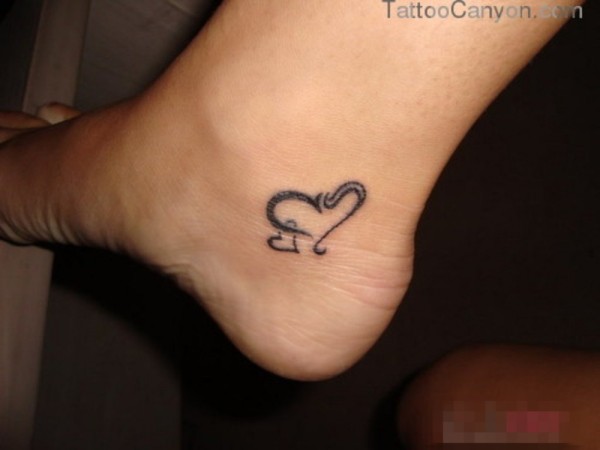 女生脚踝上黑色线条创意文艺心形纹身图片
