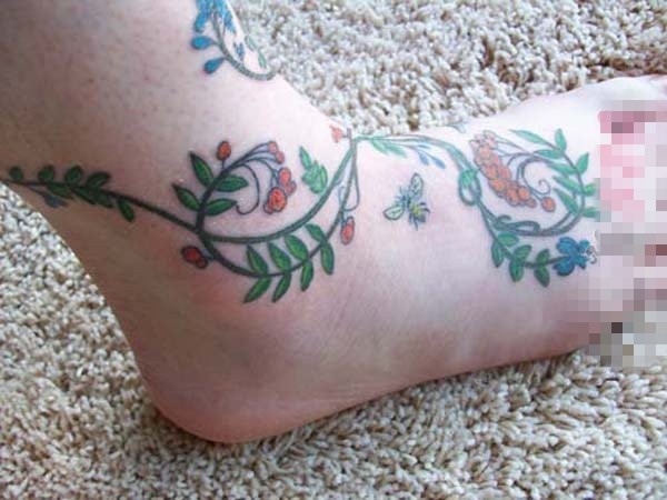 清新小桃花脚踝纹身_脚部纹身图案大全_纹身图吧