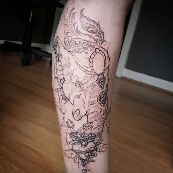 多款创意个性的唯美花纹民族风味动物大象纹身图案