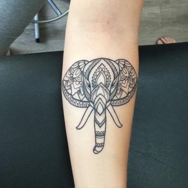 多款创意个性的唯美花纹民族风味动物大象纹身图案