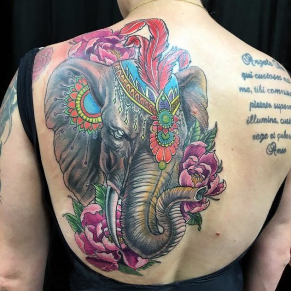 多款创意个性的唯美花纹民族风味动物大象纹身图案