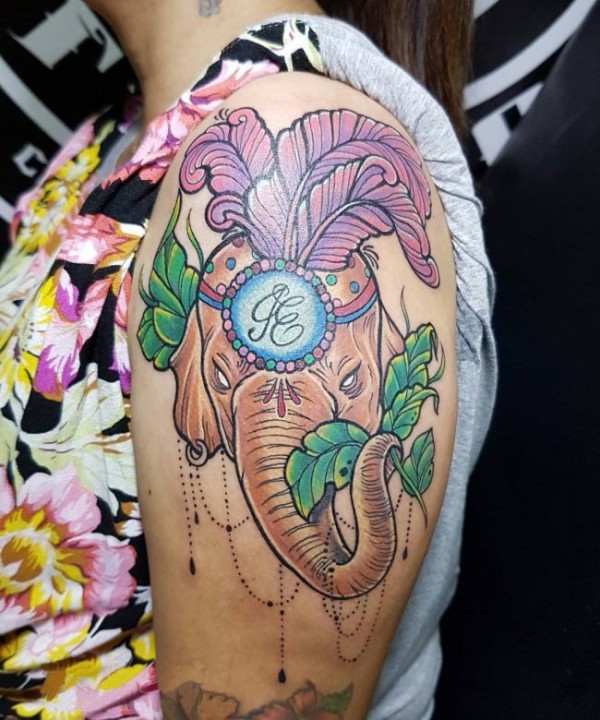 多款创意个性的唯美花纹民族风味动物大象纹身图案
