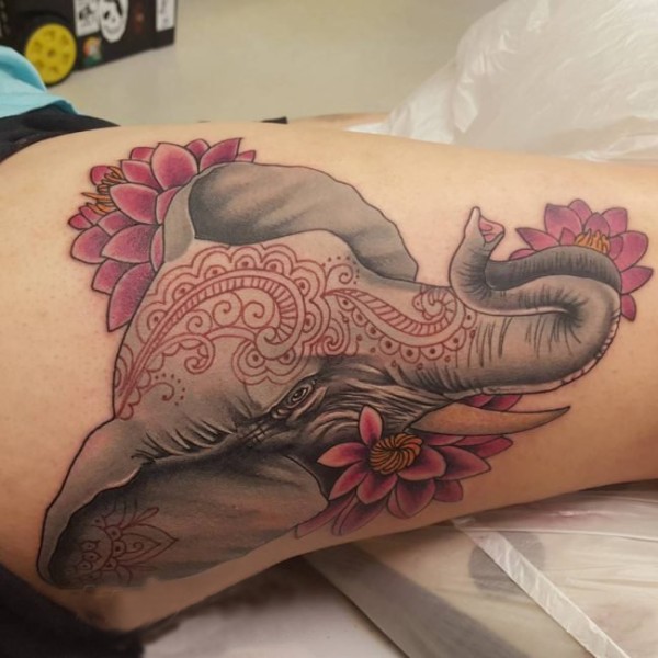 多款创意个性的唯美花纹民族风味动物大象纹身图案