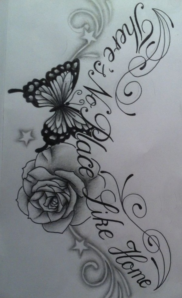 黑灰素描创意唯美蝴蝶和玫瑰纹身手稿