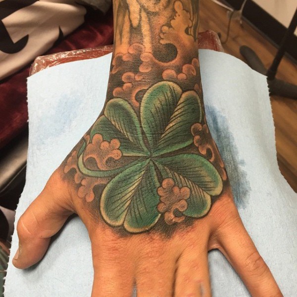幸运的彩绘几何心形小清新植物四叶草纹身图案