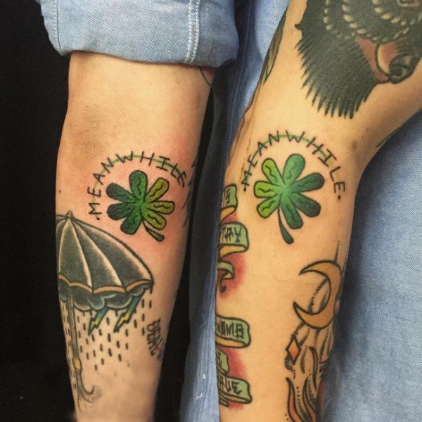 幸运的彩绘几何心形小清新植物四叶草纹身图案