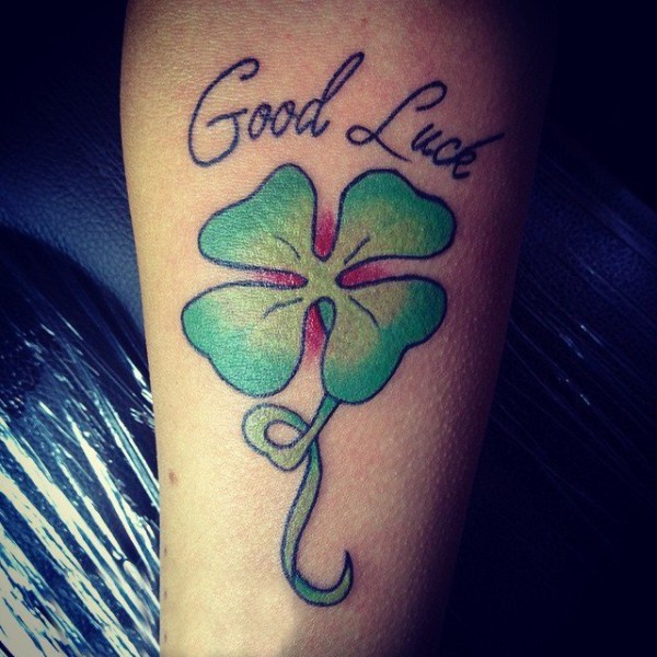 幸运的彩绘几何心形小清新植物四叶草纹身图案