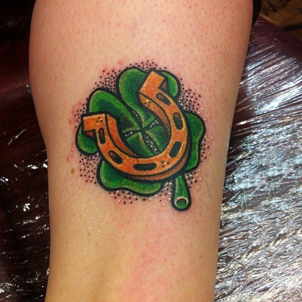 幸运的彩绘几何心形小清新植物四叶草纹身图案