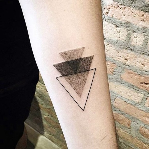 女生手臂上黑色点刺几何线条三角形纹身图片