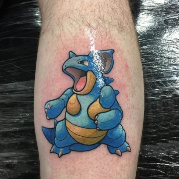 男生手臂上彩绘水彩创意卡通神奇宝贝纹身图案