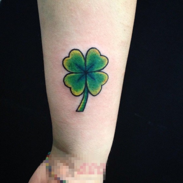 能带来幸运的彩绘小清新植物四叶草纹身图案