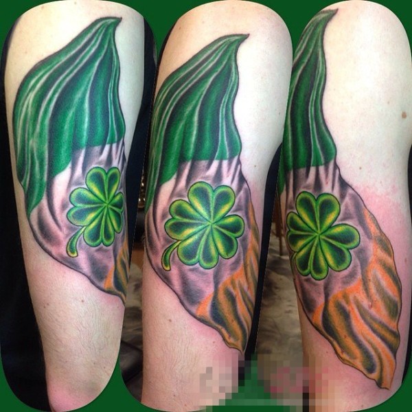 能带来幸运的彩绘小清新植物四叶草纹身图案
