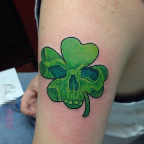 能带来幸运的彩绘小清新植物四叶草纹身图案