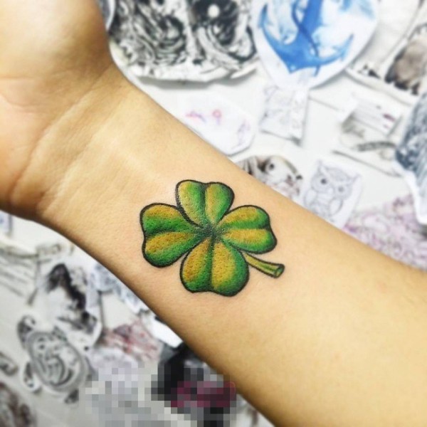 能带来幸运的彩绘小清新植物四叶草纹身图案