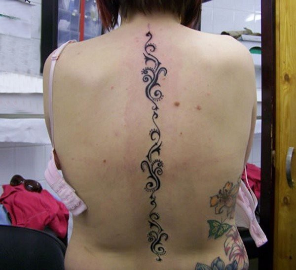 多款关于后背上彩绘个性线条创意脊柱纹身图案