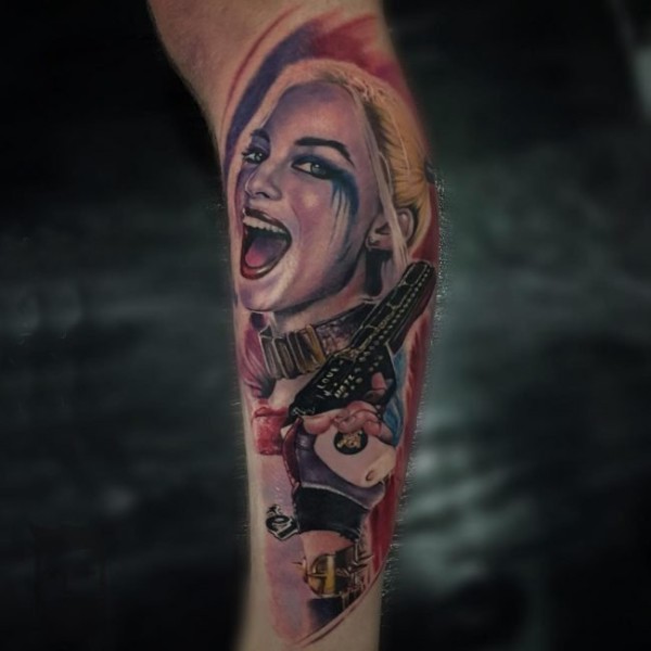 清纯女孩腿上可爱肖像纹身图片_肖像纹身图案大全_纹身图吧