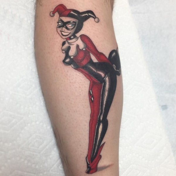 清纯女孩腿上可爱肖像纹身图片_肖像纹身图案大全_纹身图吧