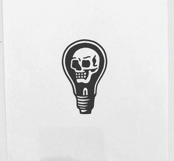 创意的黑色几何线条骷髅和灯泡纹身手稿