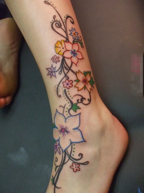 清新花朵腿部纹身图案图片_植物纹身图案大全_纹身图吧
