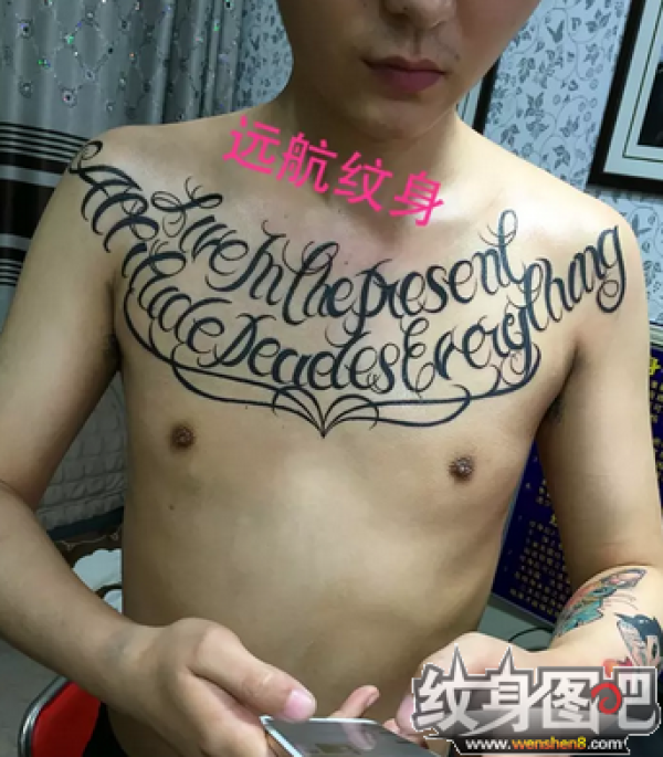 闵行颛桥纹身店,花体纹身图片,胸口英文纹身,上海远航纹身
