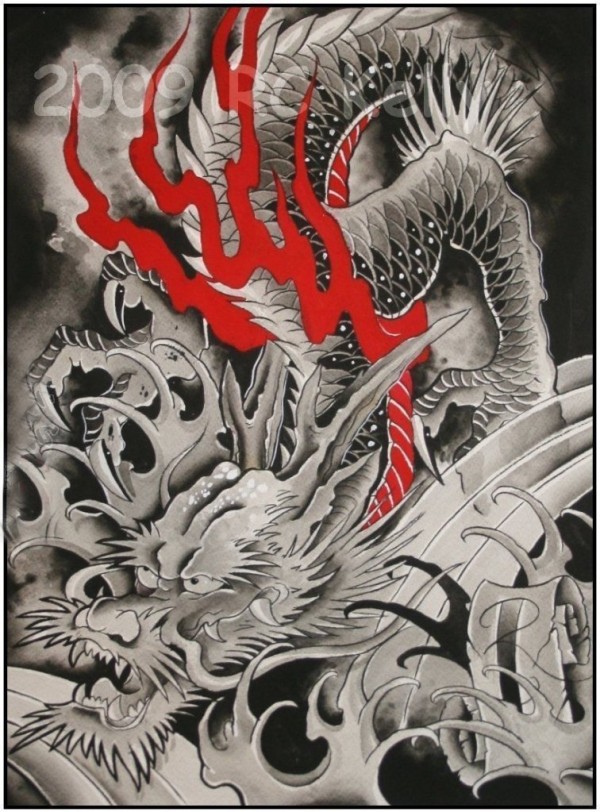 龙纹身手稿_一组老传统黑灰龙手稿纹身图案