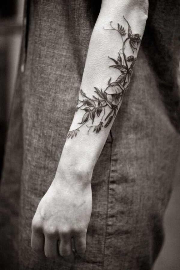 后肩唯美花藤英文图案图片_植物纹身图案大全_纹身图吧