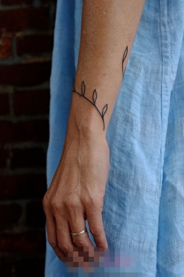 多款关于弯弯的黑色抽象线条植物藤纹身图案