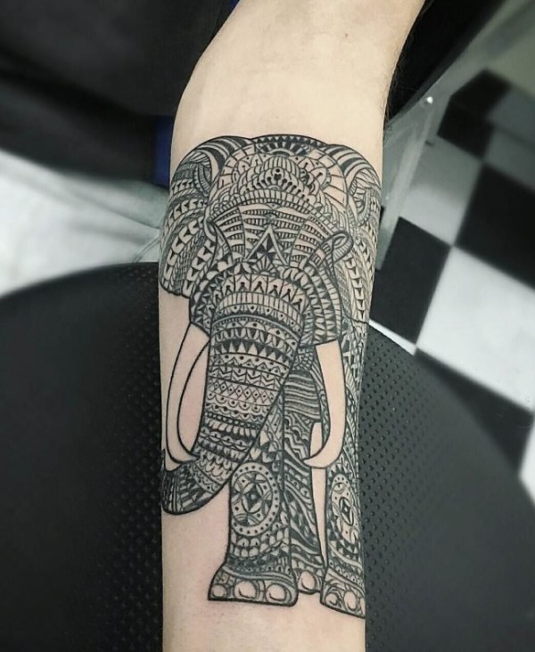 多款创意的民族元素文艺唯美精致大象纹身图案
