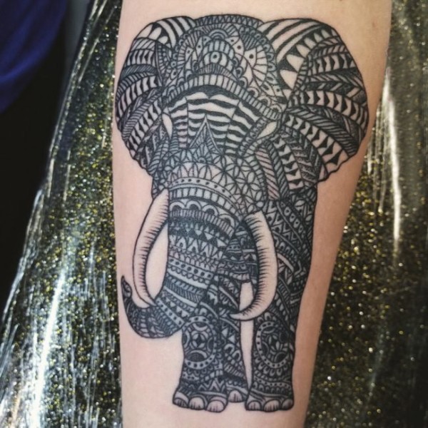 多款创意的民族元素文艺唯美精致大象纹身图案