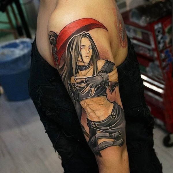 复古卡通红唇美女手臂纹身_卡通纹身图案大全_纹身图吧
