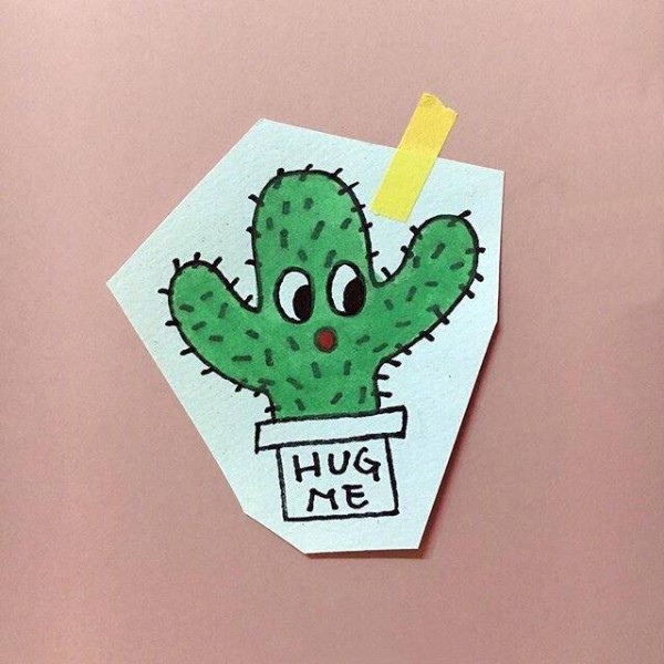 彩绘水彩素描创意抽象可爱仙人掌小图案纹身手稿