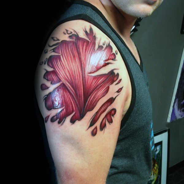 彩绘个性抽象线条3d写实撕裂肌肉纹身图案