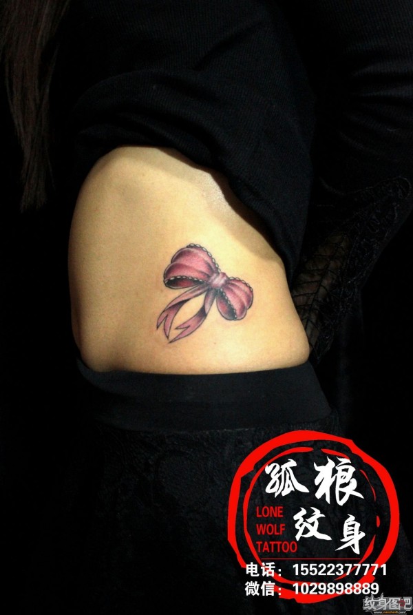 宝坻纹身 美女侧腰蝴蝶结纹身 孤狼纹身工作室作品 天津纹身