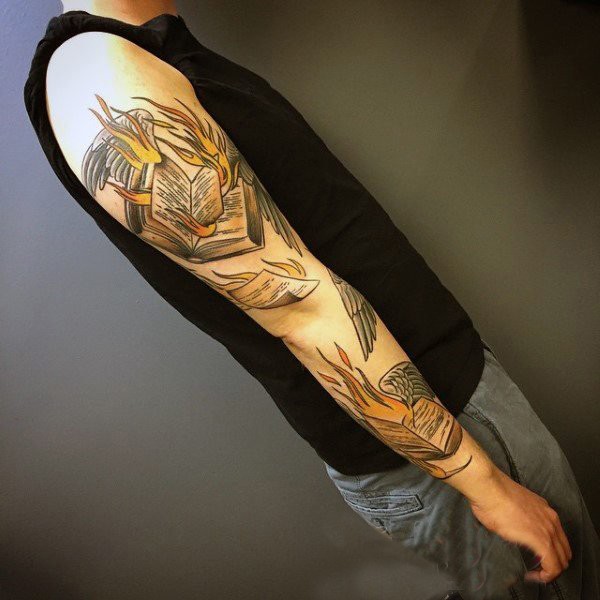 多款关于知识海洋的立体几何线条书籍纹身图案