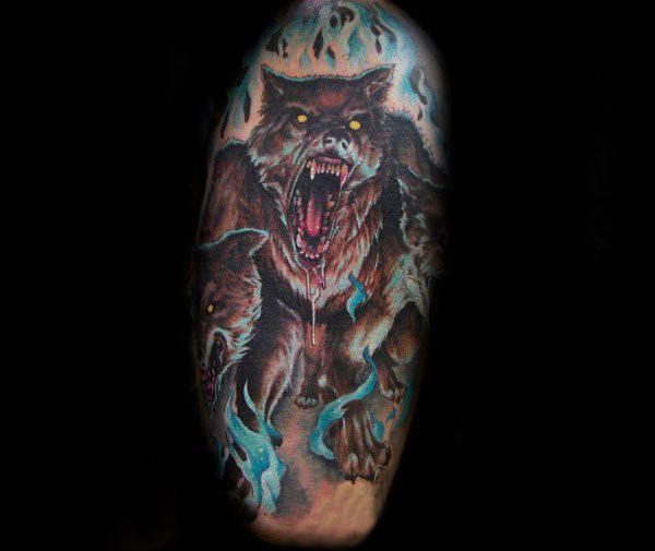 多款关于恐怖的彩绘动物地狱三头犬纹身图案