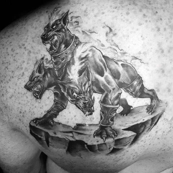 多款关于恐怖的彩绘动物地狱三头犬纹身图案