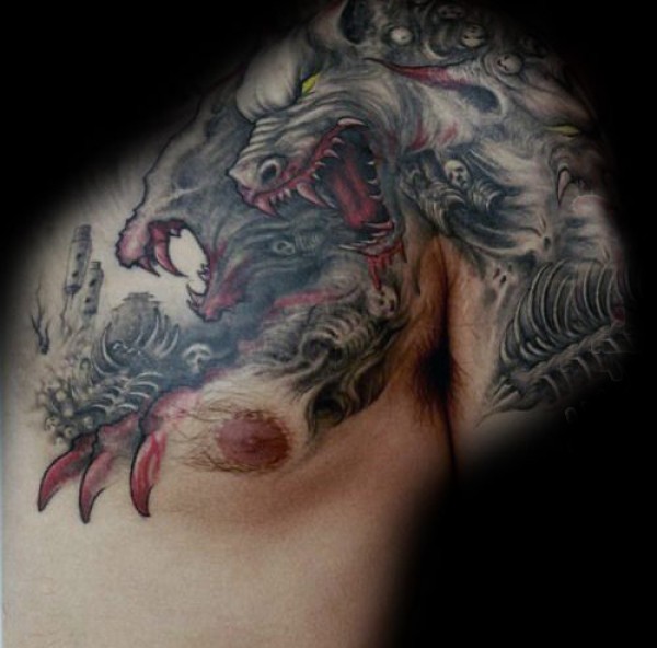 多款关于恐怖的彩绘动物地狱三头犬纹身图案