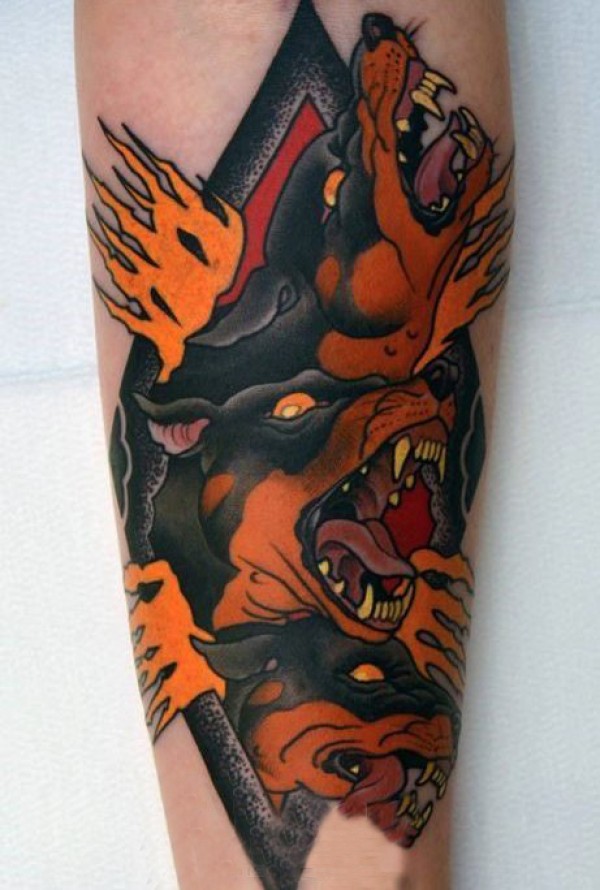 多款关于恐怖的彩绘动物地狱三头犬纹身图案