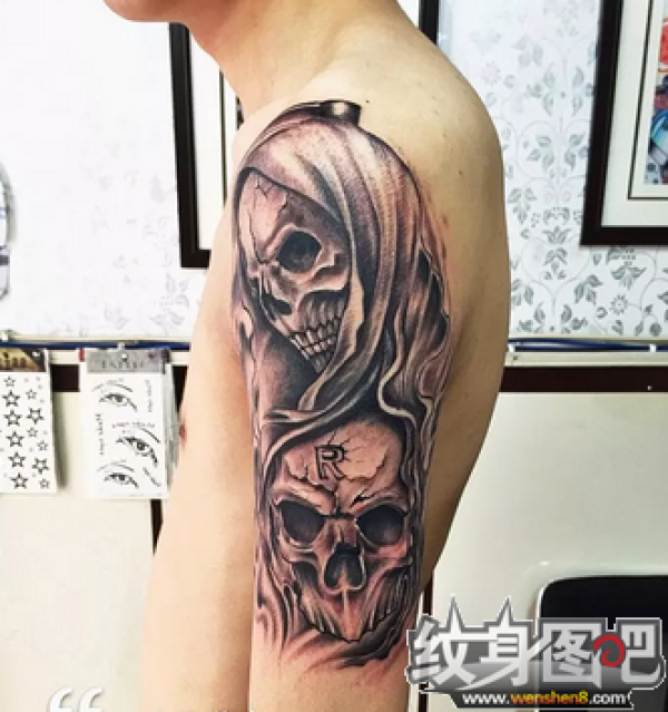 个性手臂悲伤的骷髅纹身图案图案图片_骷髅纹身图案大全_纹身图吧