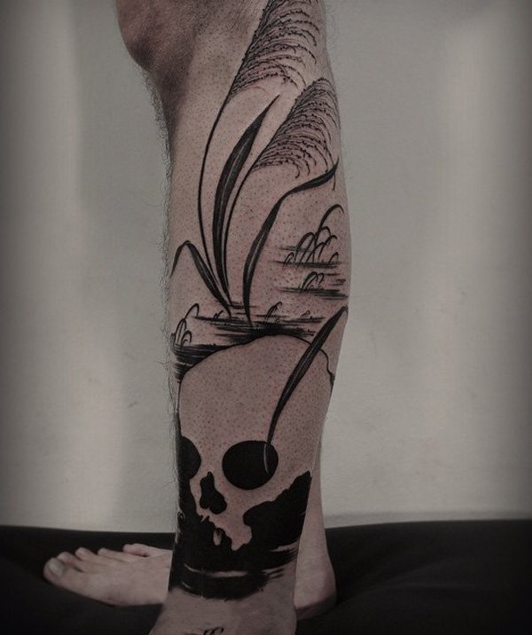 花腿纹身--一组大黑腿纹身图案作品欣赏