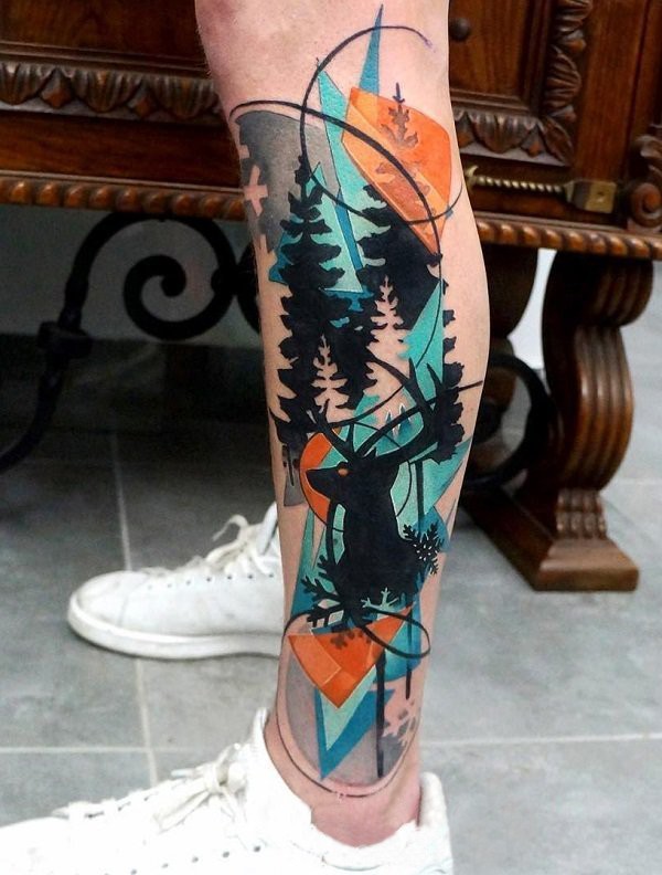 多款关于小腿上的几何线条创意纹身图案