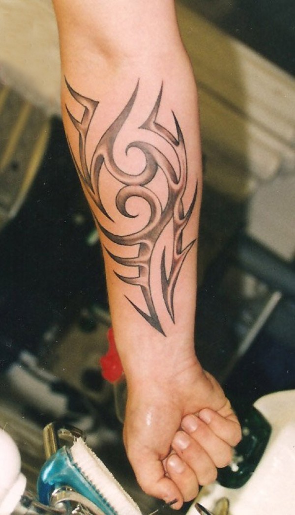 男生手臂上黑灰素描点刺技巧创意图腾纹身图片