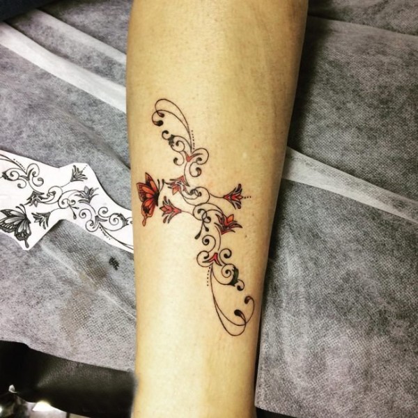 后肩唯美花藤英文图案图片_植物纹身图案大全_纹身图吧