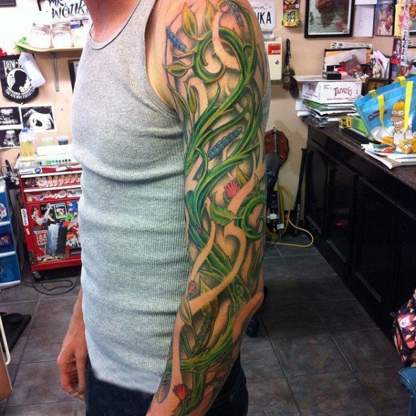 后肩唯美花藤英文图案图片_植物纹身图案大全_纹身图吧