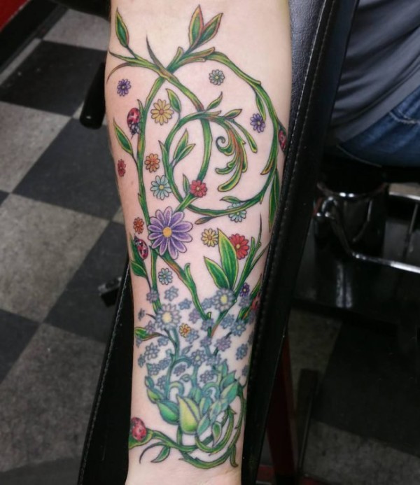 和实物非常相似的手臂花朵纹身图案